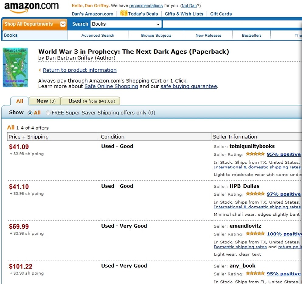 This is the same book that sells at Amazon.com in “good” used condition for $41 and “very good” used condition for $59.99 - $101. Don’t believe me? Here is the screen shot to prove it.